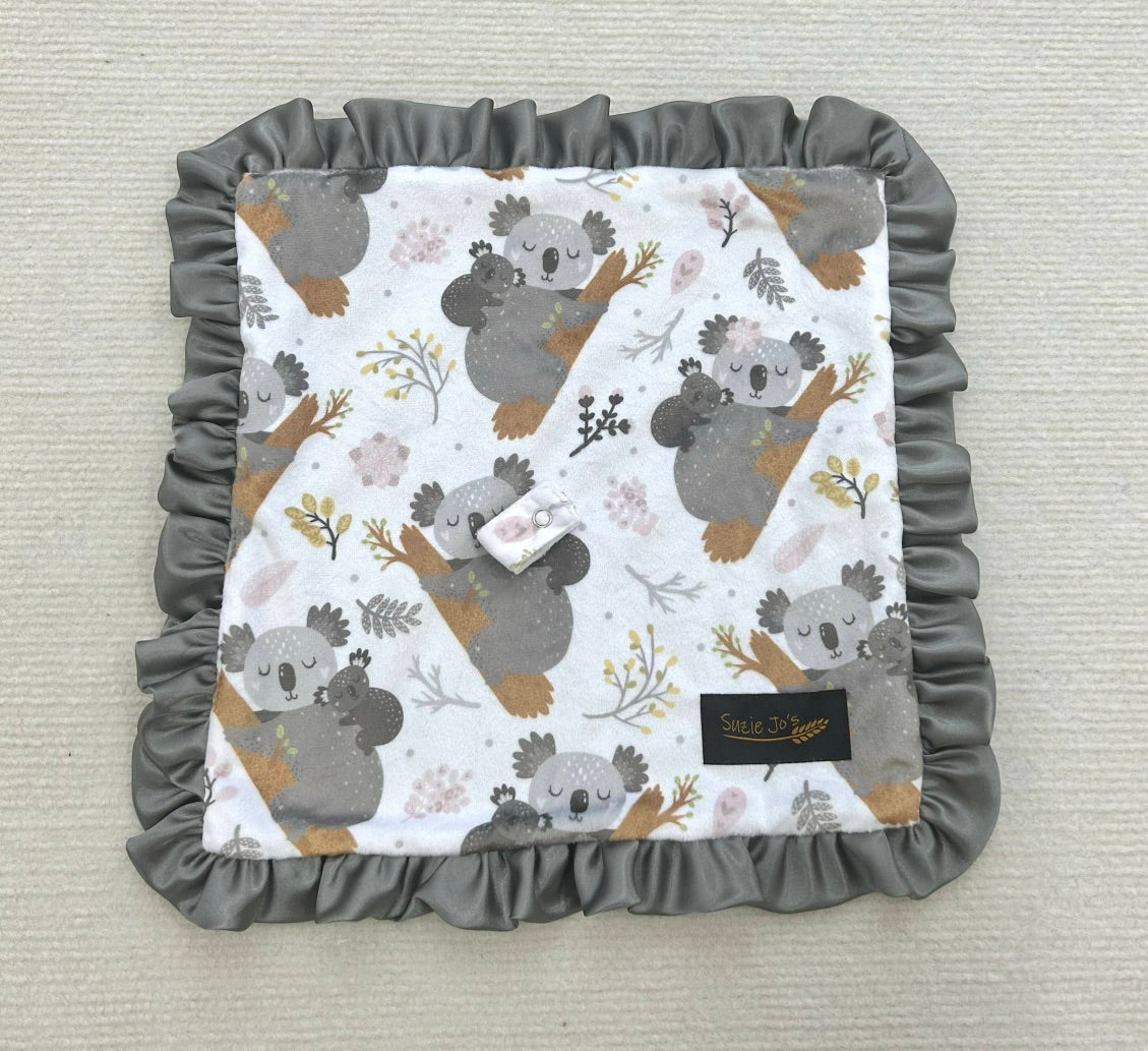 Pacifier blankets are a great addition for little ones who tend to carry their "Silky" with them in the car, and you don't want to risk losing their pacifier or favorite toy. These blankets come with a durable snap tab that allows you to attach anything you want to keep close to your little one while in their car seat, stroller or on a plane!